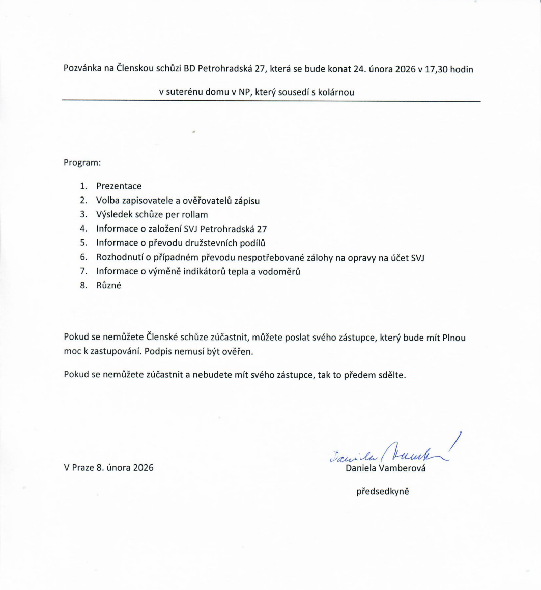 © 2026 Bytové družstvo Petrohradská 27